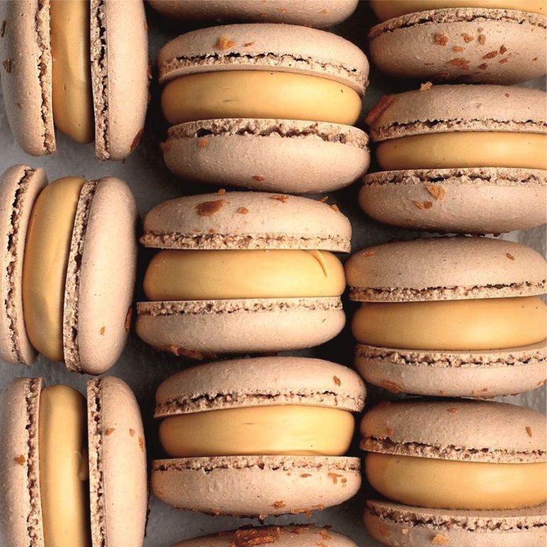 Миндальные крышечки, взбитая карамель с Бейлис, хрустящая вафля.