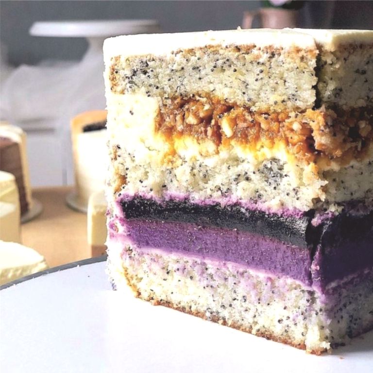 Маковый бисквит, черника, кешью.